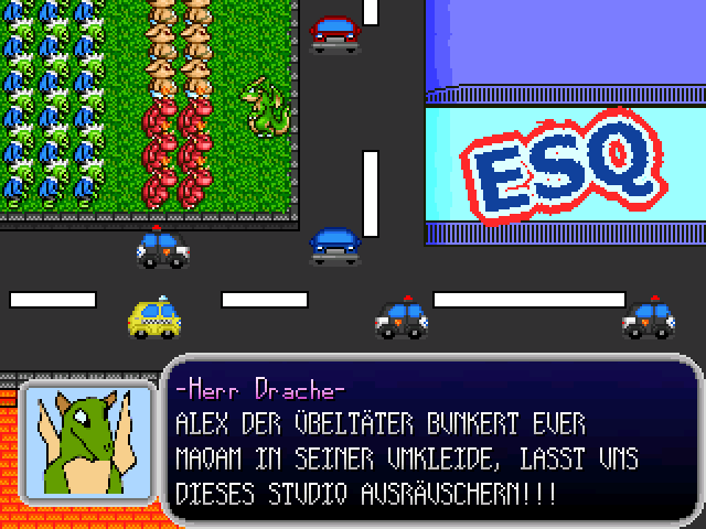 Nach dem katastrophalen Vorgänger von Steffi Schulz, dem geilen Stück, dem geilen (Woher ich das weiß? Tja, die Gute hat doch tatsächlich ein Foto von sich in die Credits gepackt), beglückt sie uns hier zusammen mit "Slothsoft" Gott sei Dank nur mit einem Maker-Movie statt einem nervtötenden Jump'N'Run. Der Humor ist noch nichtmal Rentner-Niveau, eine Story noch nichtmal vorhanden ... Einzig die selbstgemachten Paint-Artworks könnte man positiv hervorheben. Dabei hätte die Sache mit dem Drachen als Bürgermeister und seiner Armee aus Orks und Untoten eigentlich Potential gehabt, aber ich konnte keine einzige witzige Stelle im Spiel finden. Passt somit perfekt in die selbe Schublade wie all die anderen lahmen Maker-Filme von damals (außer "Billy's House"). Tut mir leid, jetzt habe ich es gewagt, am Spiel rumzunörgeln, obwohl man ja im Vorgänger angefleht wurde, dies bleiben zu lassen.