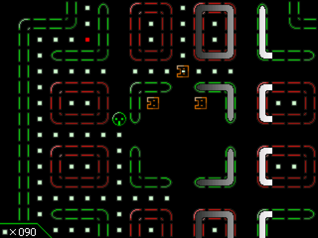 Ich hab ´nen ziemlich einfaches und schlichtes Menü eingebaut und die Level verändern sich im Laufe des Spiels. Das könnt ihr euch folgendermaßen vorstellen: Am Anfang eines Levels gibt es einige Kugeln die von roten Wänden umschlossen sind, diese verschwinden dann mit der Zeit und neue Gegner erscheinen, wodurch sich die Level verändern und der Schwierigkeitsgrad im Laufe des Levels zunimmt. (Ähnlich wie bei Siara1)