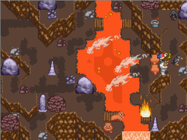 You are the mountaineer ''Deacon Messner'' who wants to rescue the standard princess who was kidnapped by that retarded freak known as ''The Yeti'', the infamous mysterious snow creature. Play Messner (the hunter) and the Yeti (the hunted) alternating to beat 4 crazy levels on the ''Mount Everchest'' which are full of traps and reach the final battle. The game contains lots of unlogical things and opposites like the existence of fire right besides ice. Luck is an important factor in this game. More than skills. The difficulty of the levels changes. But there are savepoints before each level and no annoying game over screens.